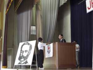 校長先生にJRCのバッジをいただいてJRCのメンバーの一員だと確信しました。これからは、JRCのメンバーとしての自覚をもって、いろいろな活動にがんばっていきたいと思います。 (高田さん) |