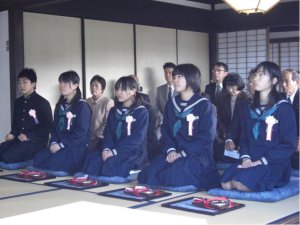 | そして、3年間活動に積極的に参加した近藤美里さんをはじめ9名の生徒諸君に、岡山県が青少年の善意ある行為、他の青少年の模範となる行為等をおこなった18歳未満の個人に贈る『わかば賞』が贈呈されました。 |